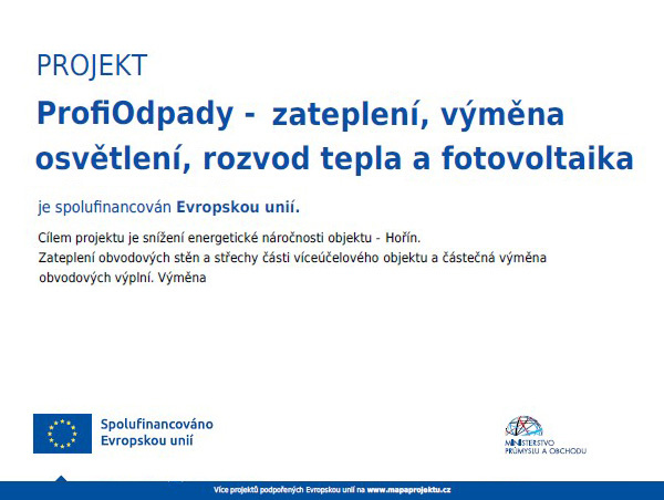 Cílem projektu je snížení energetické náročnosti objektu - Hořín. Zateplení obvodových stěn a střechy části víceúčelového